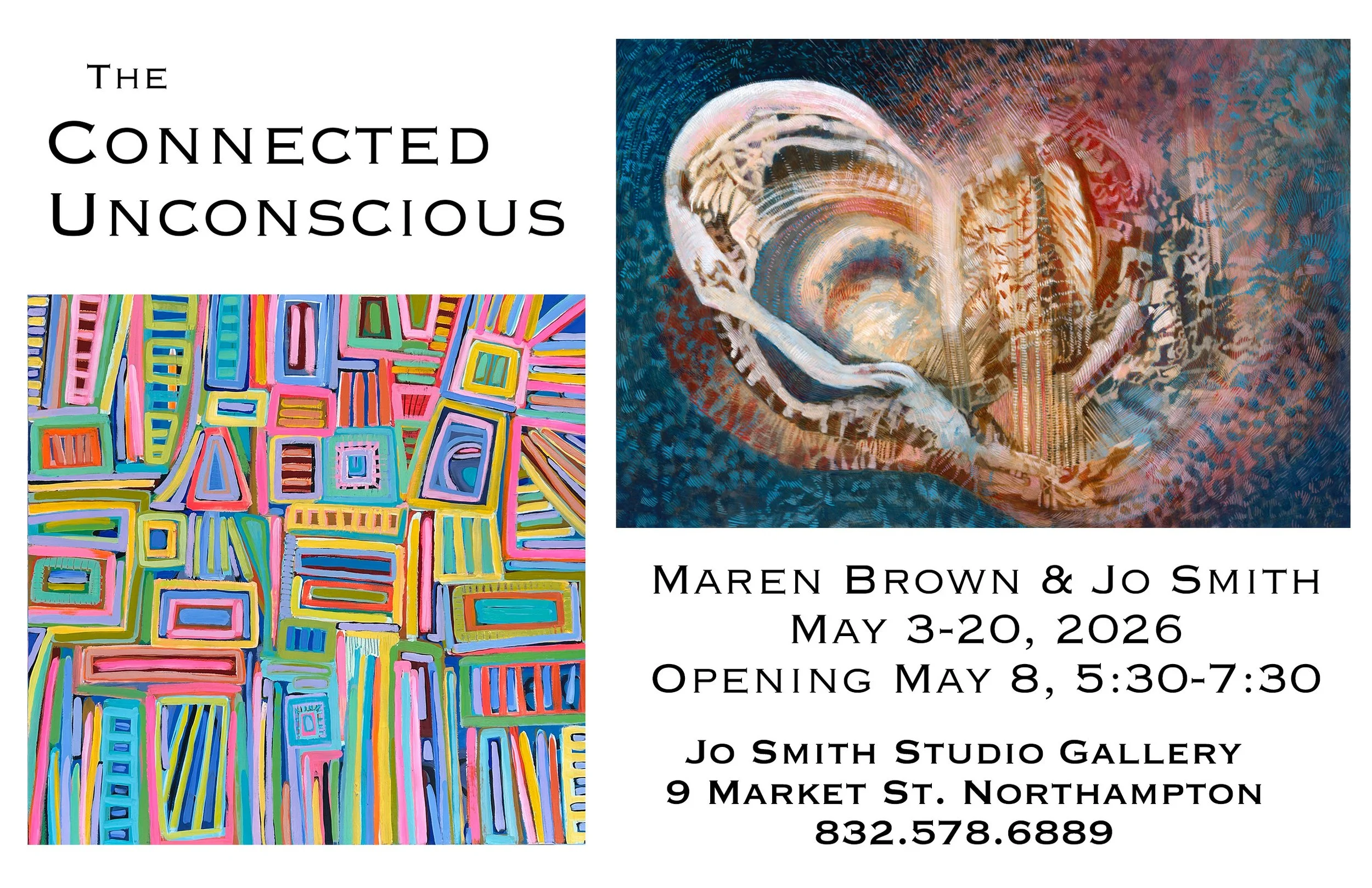 Paintings from Maren Brown’s Manifestations series will be featured in the two-person show, The Connected Unconscious, with Jo Smith at Jo Smith Studio Gallery on 9 Market Street in Northampton, MA.